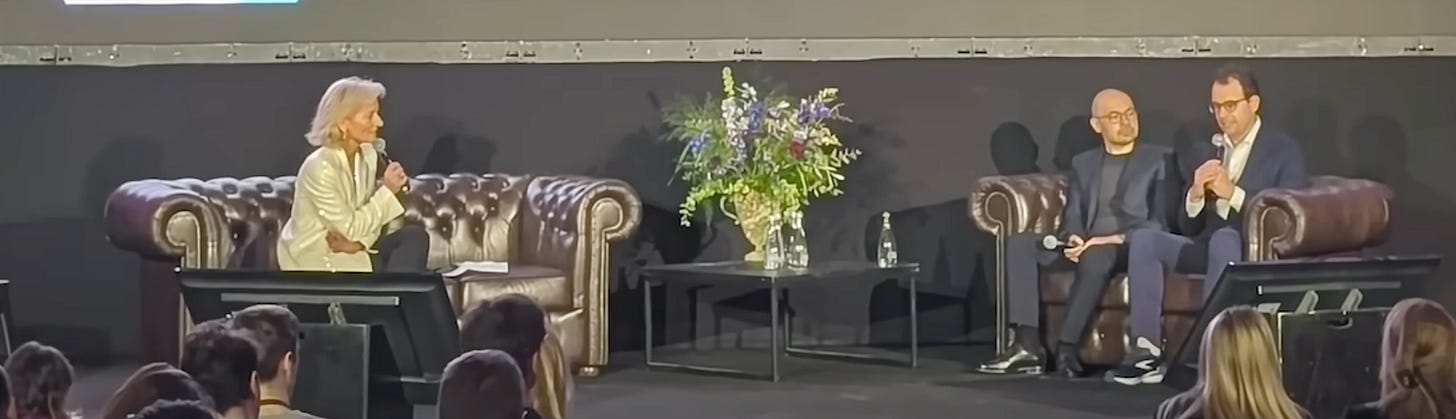 These government predictions align with what we're hearing from leading AI CEOs. Once you get over the weird gap in couches, it’s cool to see Dario Amodei (CEO of Anthropic) and Demis Hassabis (CEO of DeepMind) in a joint conversation with Economist editor-in-chief, Zanny Minton Beddoes.